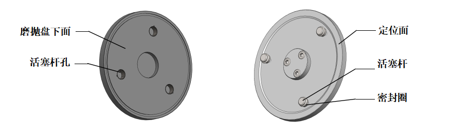 01  磨拋盤可快速更換,兩手拿住磨拋盤輕輕上提即可取下來;將另一個磨拋盤兩手拿平,目測磨拋盤的三個活塞桿孔與三個活塞桿基本對應時落下,感覺其中一個孔對應時,輕微擺動磨拋盤使另兩個也對應后將盤持平插入,再用手控壓一下,使磨拋盤下面與磨拋座的定位面完全接觸。