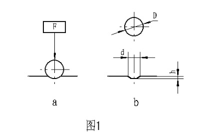 金屬布氏硬度試驗(yàn)系采用一定直徑硬質(zhì)合金球,以規(guī)定試驗(yàn)力壓入被測(cè)材料表面(圖1a)按規(guī)定保持時(shí)間后,卸除試驗(yàn)力,(圖1b)測(cè)量試樣表面的壓痕直徑,以計(jì)算出布氏硬度,并以下式計(jì)算之: HBW=0.102 x 2F/πD(D-)
